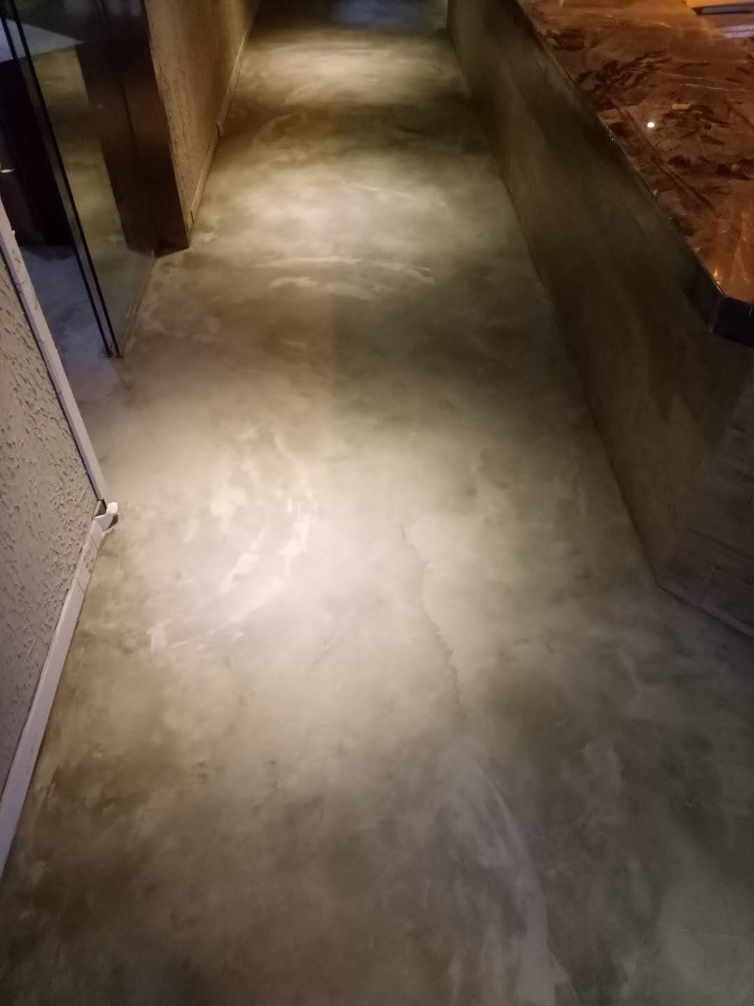如果地面不平,是不能做藝術復古地坪,要先做水泥自流平進行找平后再做出復古的效果。也可以用水泥自流平加色直接做出來流暢的自然紋路。復古地面個性化極強,可以針對不同場所的特點選擇契合其風格的色彩搭配,給客戶以自然舒適之感。